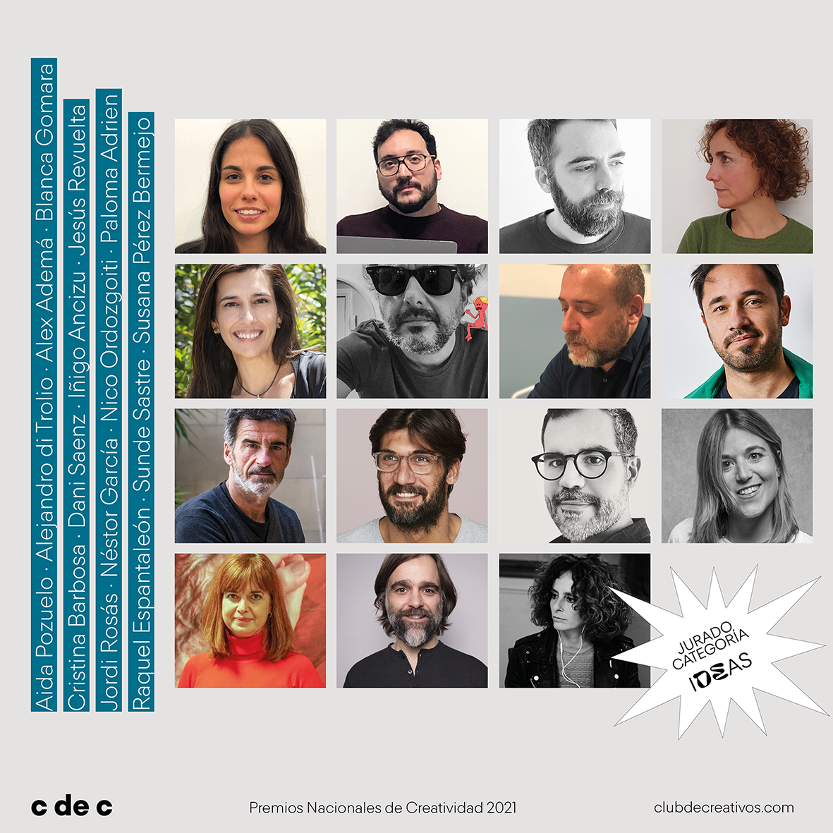 El apartado de IDEAS contará con un jurado de quince personas: doce creativos, un planner, un profesional del área de cuentas y un anunciante. Los profesionales que compondrán este jurado son: Jordi Rosás y Raquel Espantaleón (procedentes del jurado de Estrategia), Cristina Barbosa y Jesús Revuelta (procedentes del jurado de Contenido), Alex Ademà y Sunde Sastre (procedentes del jurado de Innovación), Néstor García y Susana Pérez (procedentes del jurado de Craft – categorías transversales), Aida Pozuelo y Nico Ordozgoiti (procedentes del jurado de Craft – imagen estática), Dani Sáenz e Iñigo Ancizu (procedentes del jurado de Craft – imagen en movimiento), Alejandro di Trolio y Paloma Adrien (procedentes del jurado de Craft – interacción con el usuario), a los que se suma Blanca Gomara, directora creativa ejecutiva en Dimensión, designada por la junta entre los creativos más votados por los socios.