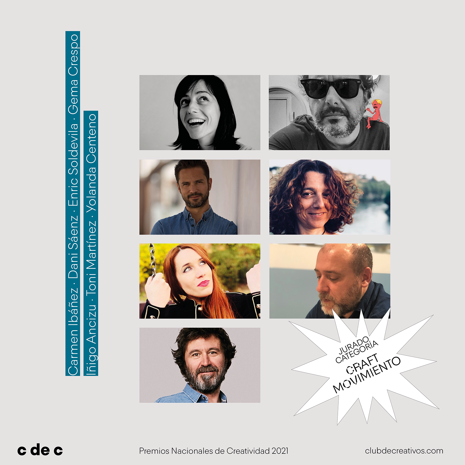– El tercer grupo de categorías de Craft corresponde a técnicas aplicadas sobre piezas de imagen en movimiento: animación y motion design, casting y dirección de actores, dirección, dirección de fotografía, dirección de producción, efectos especiales, montaje, sonido y música. Su jurado estará conformado por los siguientes profesionales: Carmen Ibáñez, directora creativa y co-fundadora en Madresanta; Dani Sáenz, director creativo en Leo Burnett; Enric Soldevila, consultor creativo independiente y director creativo ejecutivo freelance en Hypebeast; Gema Crespo, directora de producción en Contrapunto BBDO; Iñigo Ancizu, jefe de creatividad en Movistar +; Toni Martínez, productor ejecutivo en Pueblo, y Yolanda Centeno, realizadora en Harry.