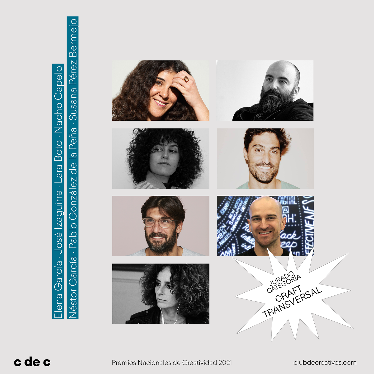 – El primer grupo de categorías de Craft se denomina “categorías transversales” y corresponde a técnicas que cruzan todos los formatos y medios: dirección de arte y redacción. Su jurado estará conformado por los siguientes profesionales: Elena García, directora creativa independiente; José Izaguirre, director creativo en Ogilvy; Lara Boto, directora creativa en Pixel & Pixel; Nacho Capelo, director creativo en La Mujer del Presidente; Néstor García, director creativo ejecutivo en Lola MullenLowe; Pablo González de la Peña, director creativo y head of art en BBH, y Susana Pérez Bermejo, directora creativa ejecutiva en Proximity.