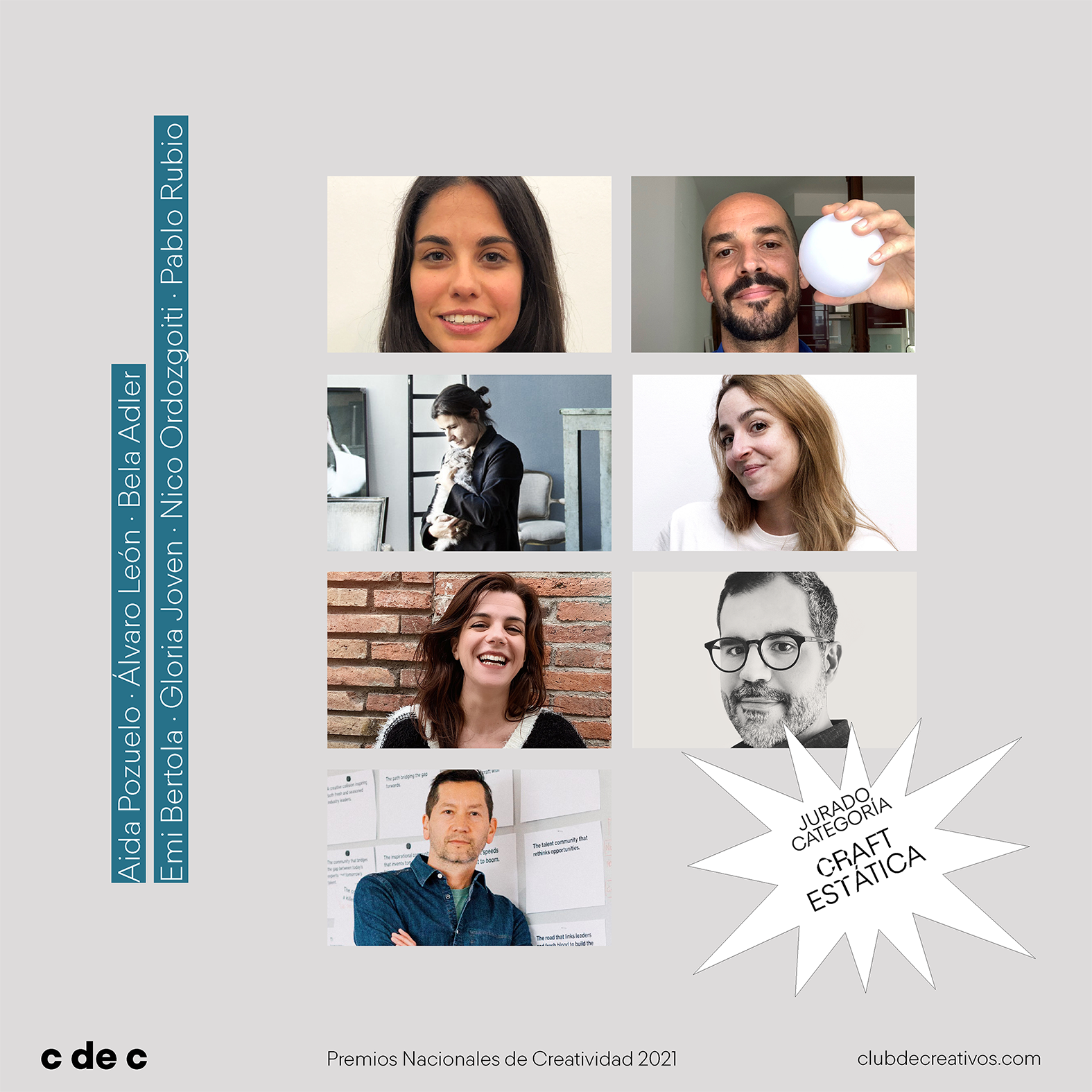 – El segundo grupo de categorías de Craft corresponde a técnicas aplicadas sobre piezas de imagen estática: diseño gráfico, fotografía e ilustración. Su jurado estará conformado por los siguientes profesionales: Aida Pozuelo, directora creativa en Kitchen; Álvaro León, director creativo en Sopa; Bela Adler, fotógrafa; Emi Bertola, directora académica en Brother Escuela de Creativos; Gloria Joven, fundadora y directora creativa ejecutiva en Hommu Studio; Nico Ordozgoiti, director creativo, y Pablo Rubio, CEO y fundador de Erretres.