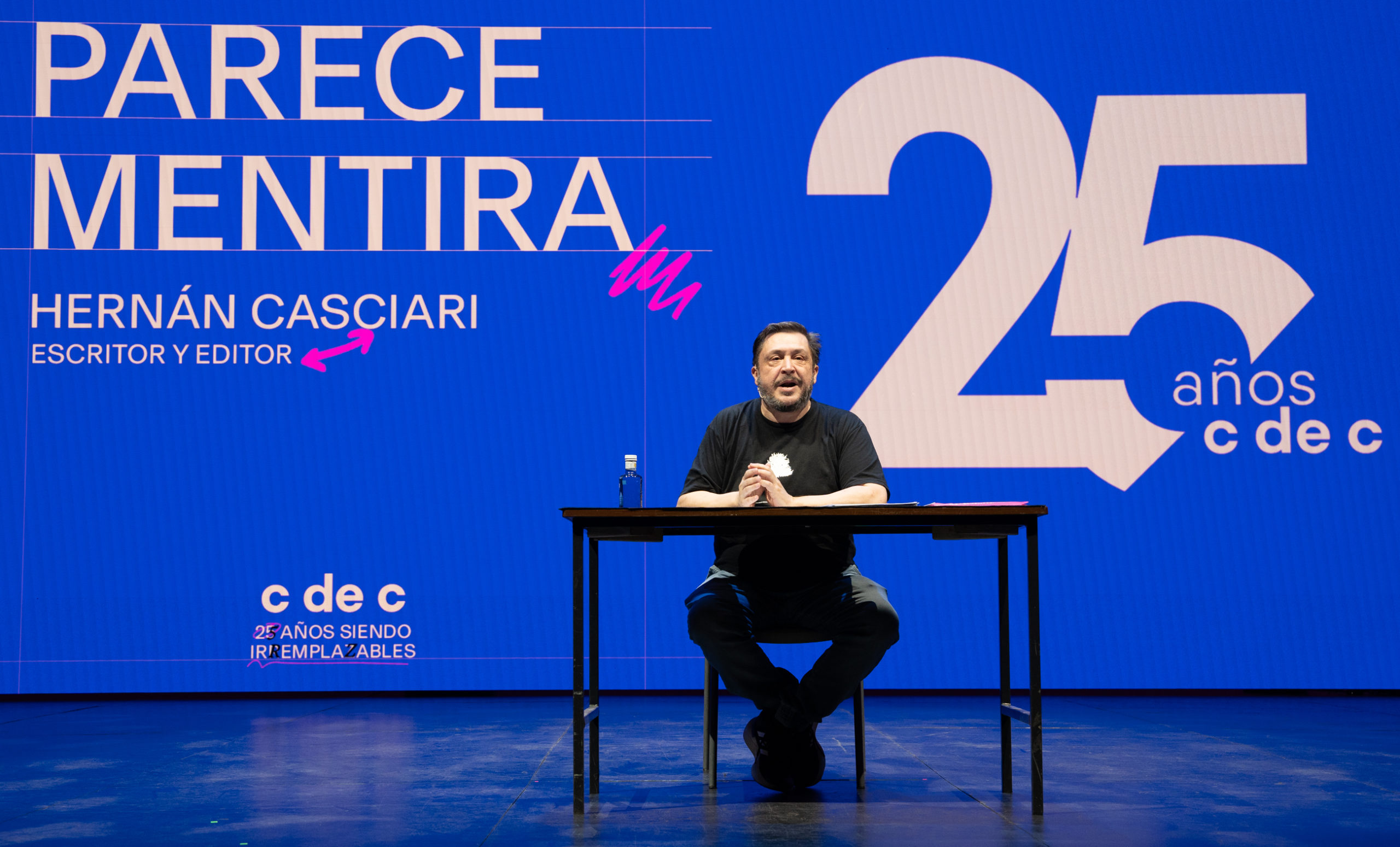 Hernán Casciari es editor y escritor. Pero sobre todo un experimentado contador de historias. Y así lo demostró en su ponencia del Día C 2024, con dos relatos de juventud que ensimismaron a la audiencia.